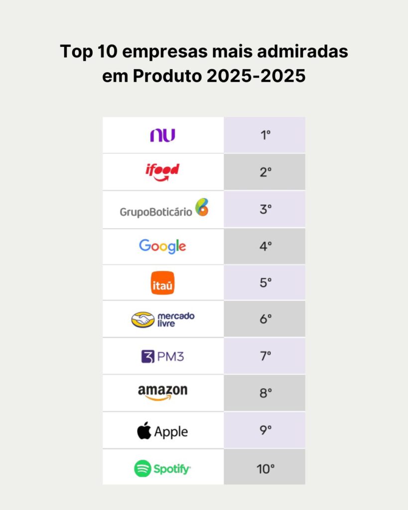 Empresas mais admiradas em Produto em 2025 tem três grandes brasileiras no pódio