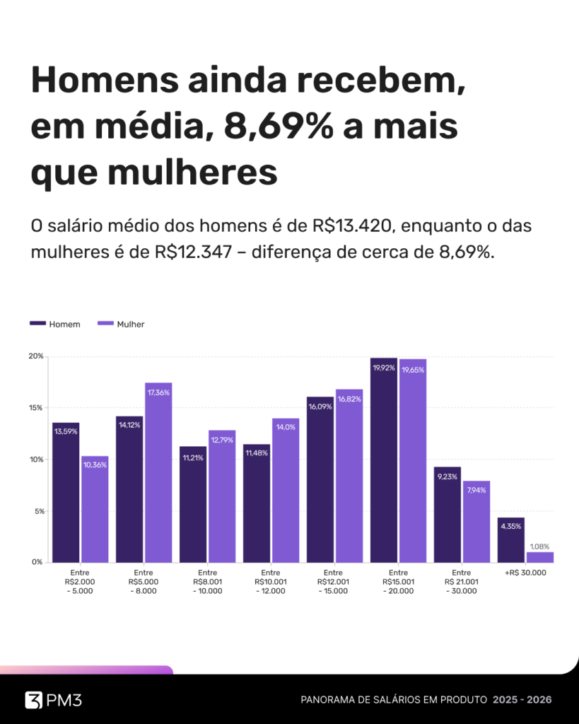 A mais recente edição do Panorama do Mercado de Produto: Salários 2025–2026, realizada pela PM3 com mais de 2 mil respondentes, traz dados detalhados sobre salários, diferenças de gênero, distribuição geográfica e tendências que moldam o futuro da carreira em Produto.